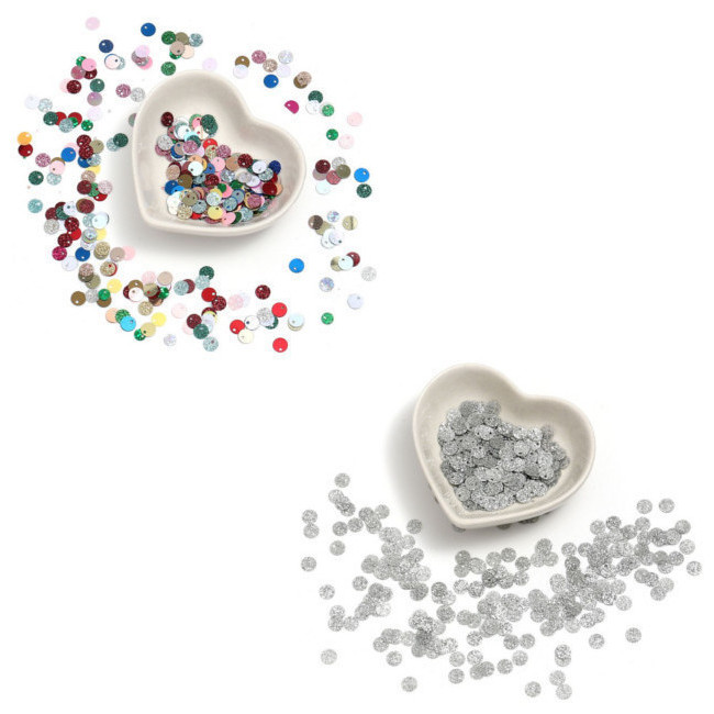 Paillettenpackung in zwei Farben erhältlich. Sie können wählen, alle Silber mit Glitter oder mehrfarbig mit einigen Pailletten mit Glitter und einige ohne.