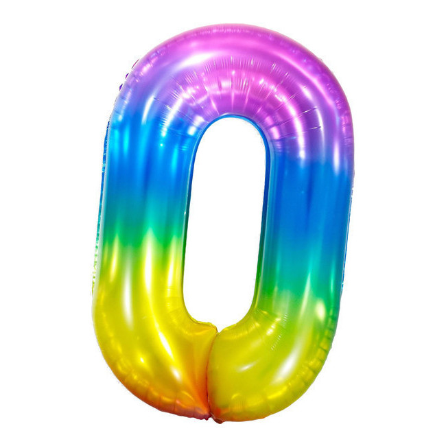 Regenbogen und Silber Nummer Ballon 1 m - 1 Einheit