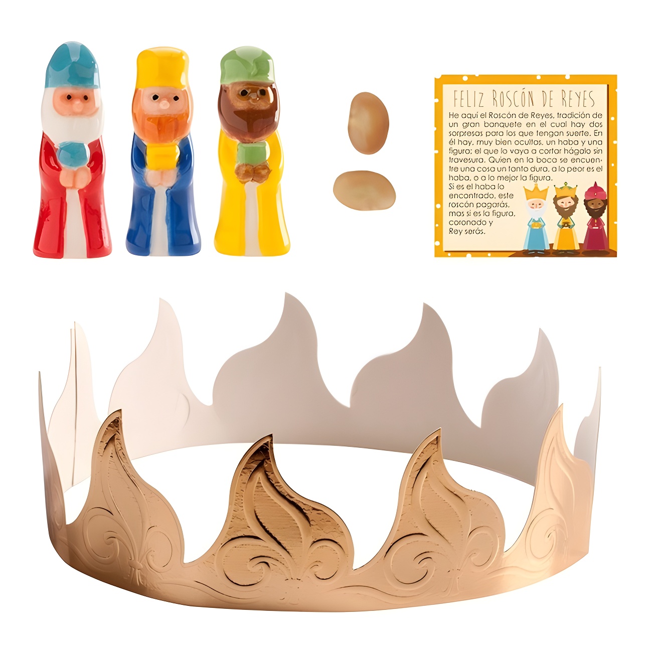 - 1 Karte mit der Aufschrift "Feliz roscón de Reyes" (Glücklicher Dreikönigskuchen).