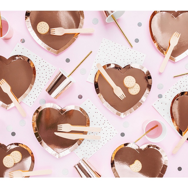 Originelle herzförmige Teller in Roségold, passend zu Ihren Partys.