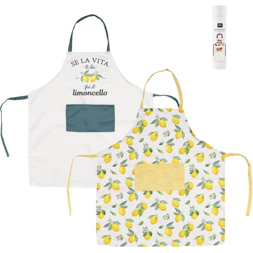 Set für Mutter und Tochter mit zwei passenden Schürzen, die Ihrer Küche eine fröhliche, sommerliche Note verleihen. Das Design mit Zitronenprint und kontrastierenden Details verbindet Stil und Spaß.