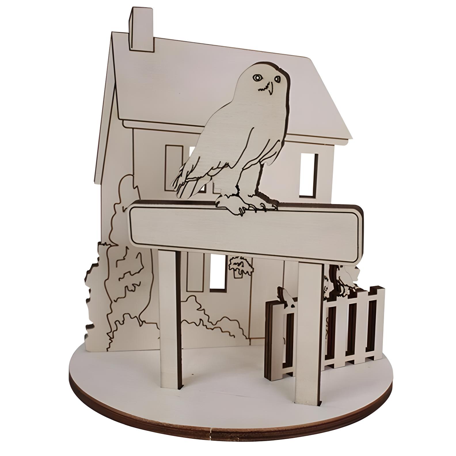 - Szenenmotiv: Haus mit Schild und Eule aus der Kollektion 'Magieschule'.