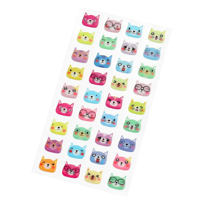 Aufkleber mit Katzengesichtern in verschiedenen Farben, ideal für einen lustigen Touch.