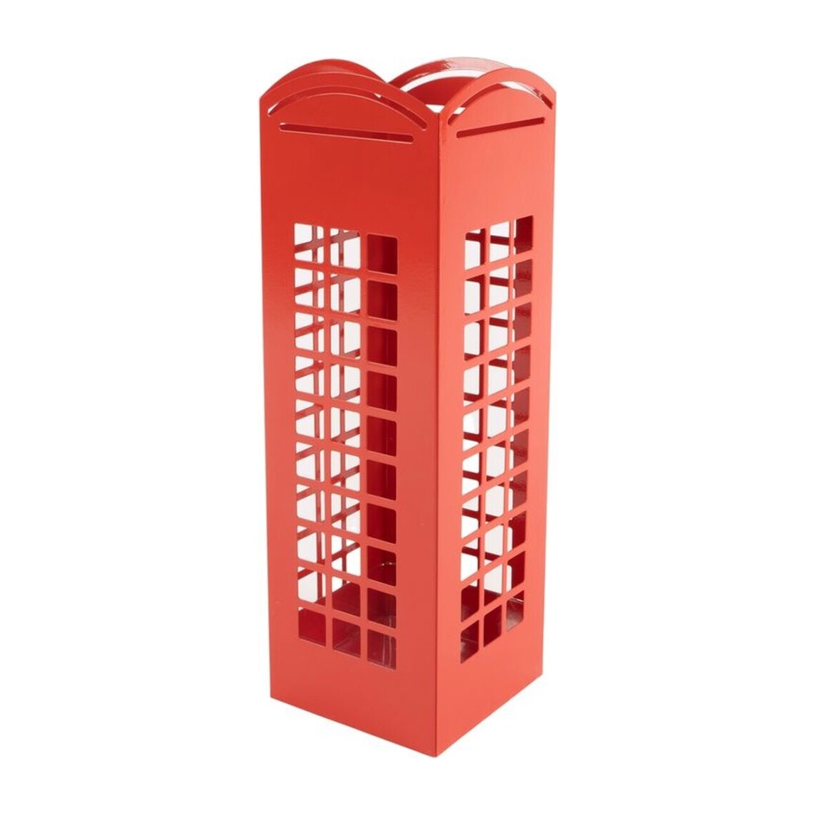 Schirmständer im Look einer roten Telefonzelle, der jedem Eingangs? oder Empfangsbereich einen auffälligen Blickfang verleiht.