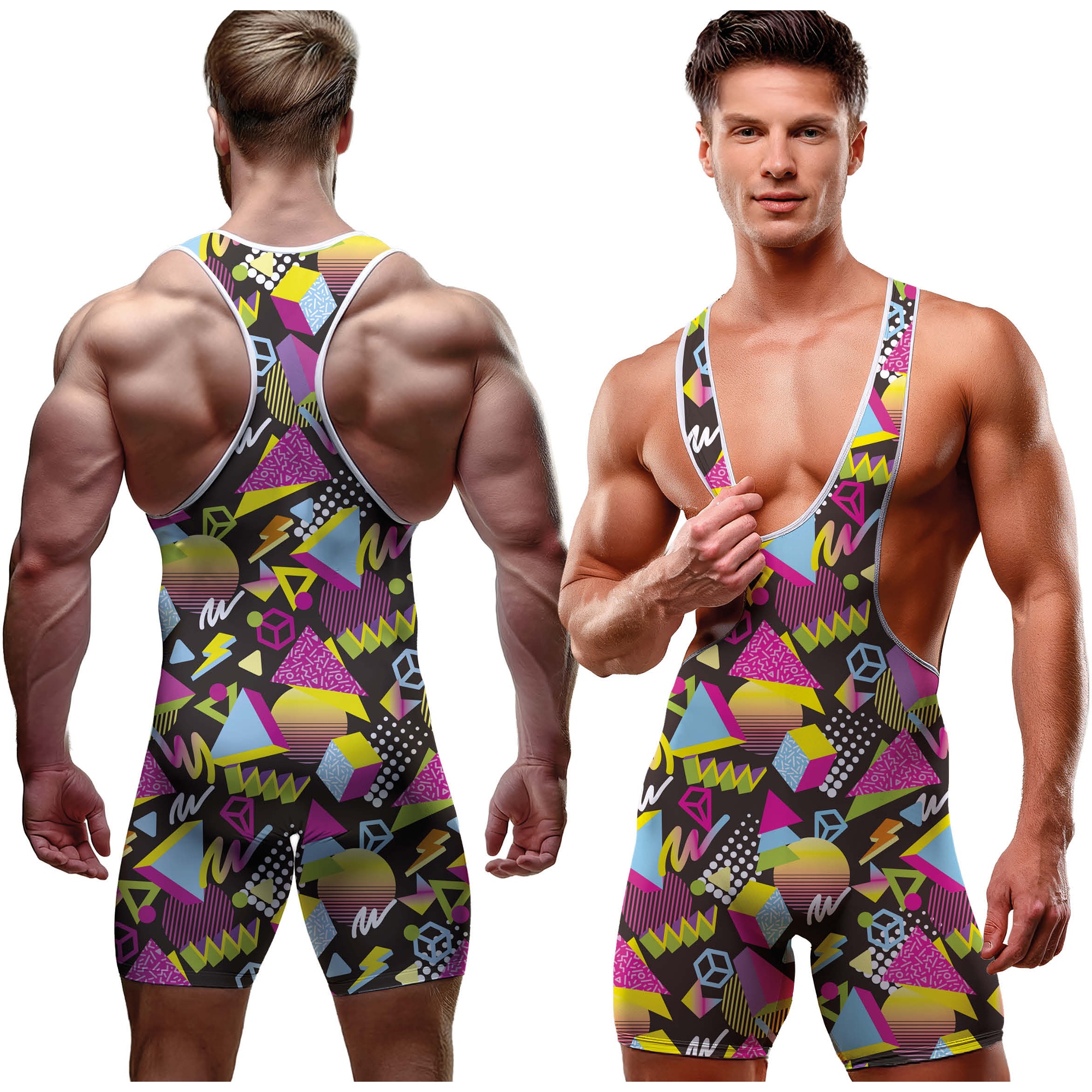 • Neon-geometrisches Muster im 80er-Stil für einen auffälligen Look.