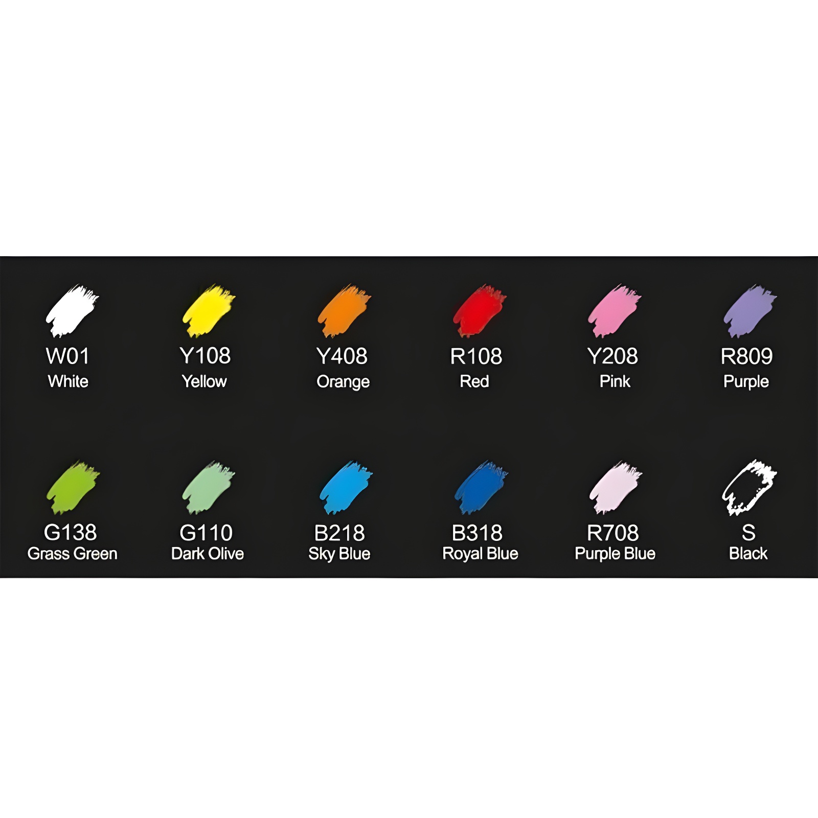 • Set mit 12 wasserbasierten Acrylmarkern.