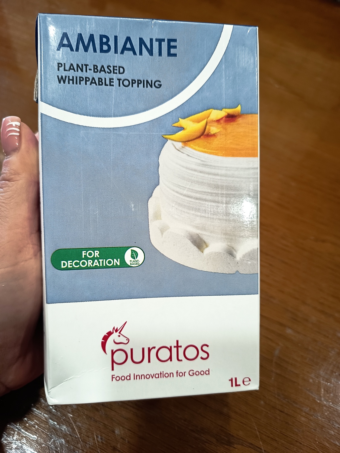 • Anwendung: Vor dem Schlagen Ambiante Topping mindestens 12 Stunden auf eine Temperatur zwischen +5 Grad und +7 Grad abkühlen. Bei mittlerer Geschwindigkeit schlagen, bis die gewünschte Konsistenz erreicht ist.