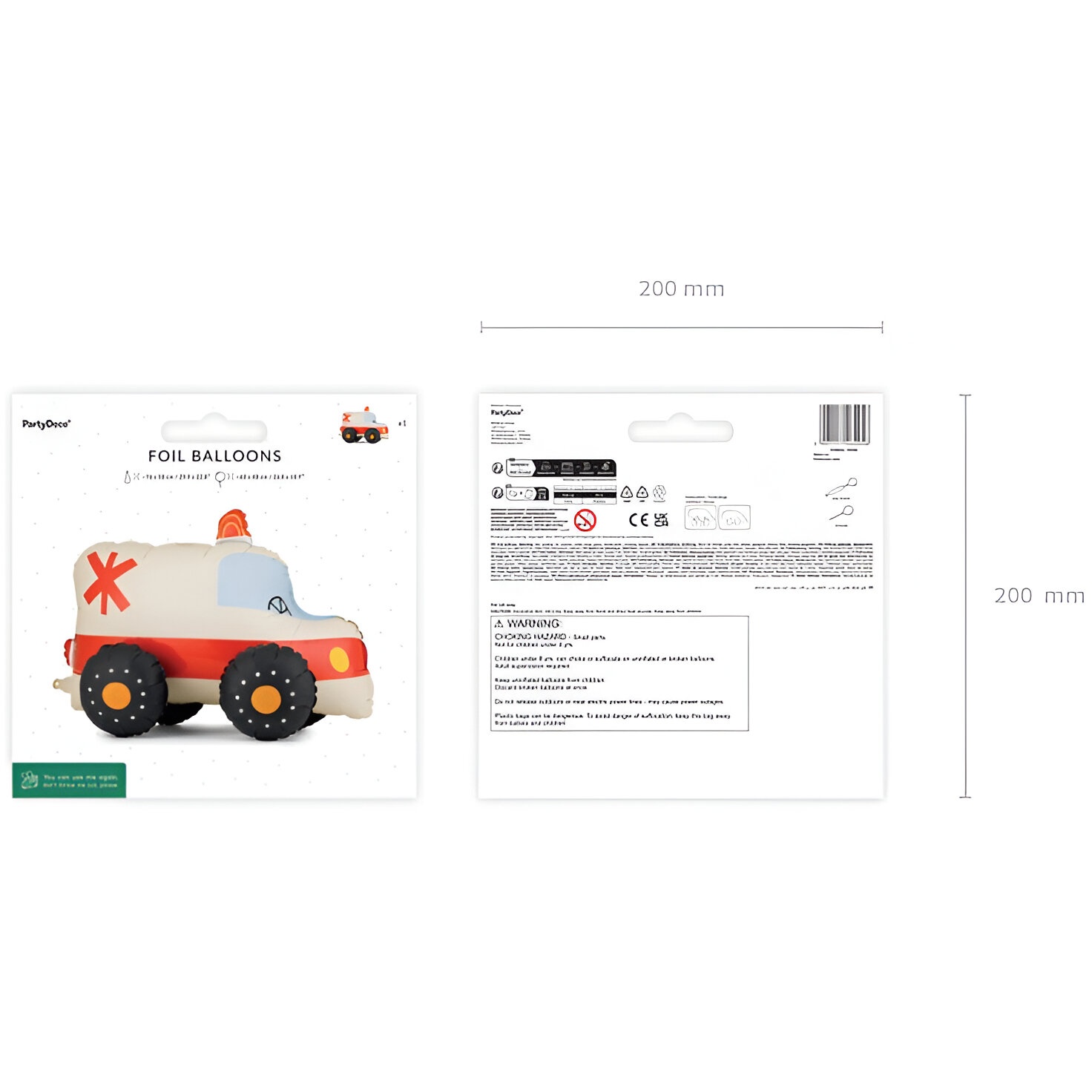Ambulanz-Folienballon, entwickelt, um Ihren Kinderfeiern einen bunten und spielerischen Akzent zu verleihen. Die glänzende Oberfläche und die kräftigen Farben ziehen Blicke auf sich und passen perfekt zu Kinderpartys. Sein auffälliges Format macht ihn zum Highlight jeder Dekoration. Er wird mit Luft aufgeblasen, sodass er auf Tischen oder dem Boden steht und sich besonders leicht platzieren lässt.