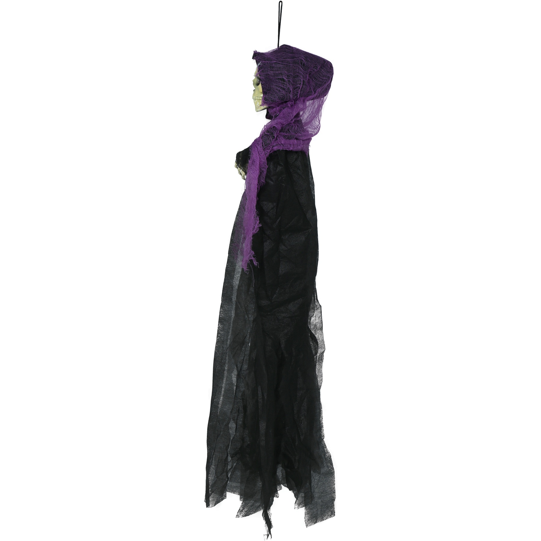 Anhänger mit Skelett in schwarzer und lila Tunika, 90 cm