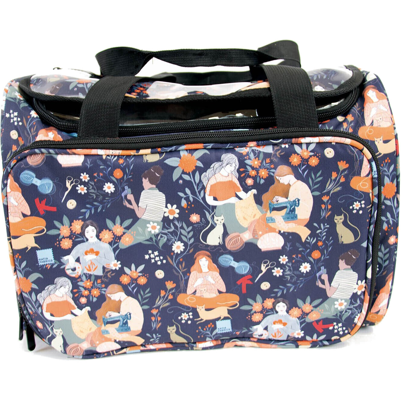 Organisieren Sie Ihre Näherei- oder Strickprojekte mit dieser modernen Arbeitsbeutel. Mit einem exklusiven Design, erstellt von der Illustratorin Lady Desidia für Katia Fabrics, verfügt sie über Doppelgriff und viele äußere sowie innere Taschen.