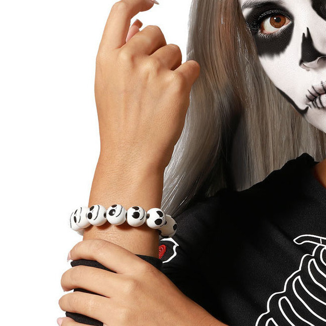 • Perlenarmband mit dekorativen Schädeln. Ideales Accessoire für dunkle oder skelettartige Outfits.