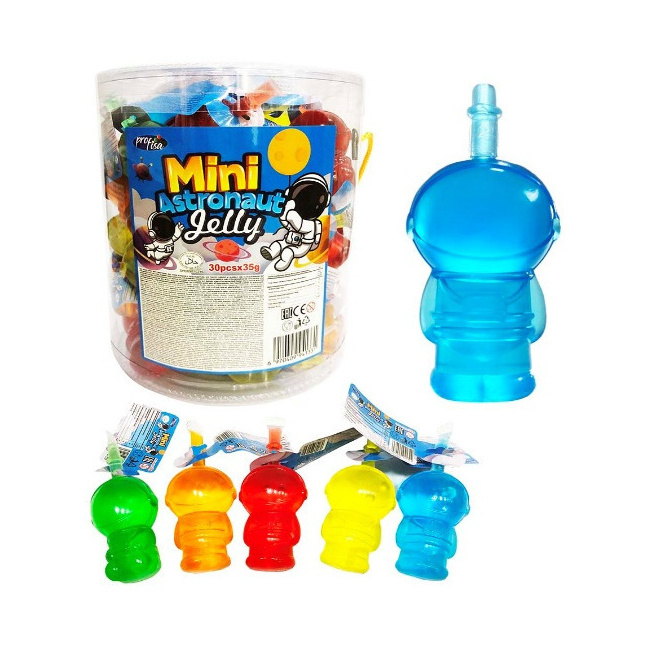 Zutaten: Wasser, Gelatine, Säureregulatoren (E330, E331), Süßstoffe (E950, E951, E955), Aromen, Konservierungsmittel (E202), Farbstoffe (E102, E110, E129, E133). Die Farbstoffe E102, E110, E129 können die Aufmerksamkeit von Kindern beeinträchtigen.