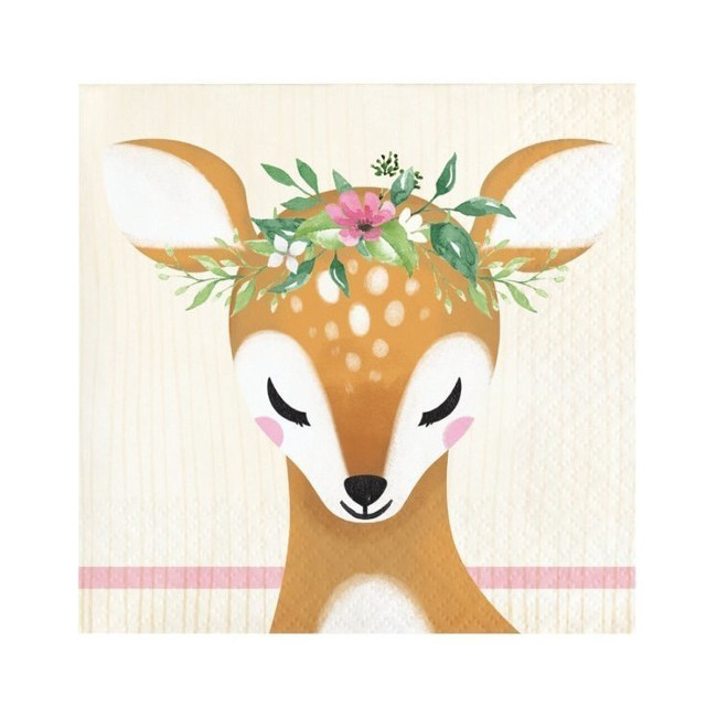 Feiern Sie eine besondere Party mit diesen schönen Servietten in sanften Farben und mit der Zeichnung eines niedlichen Hirsches als Hauptfigur.