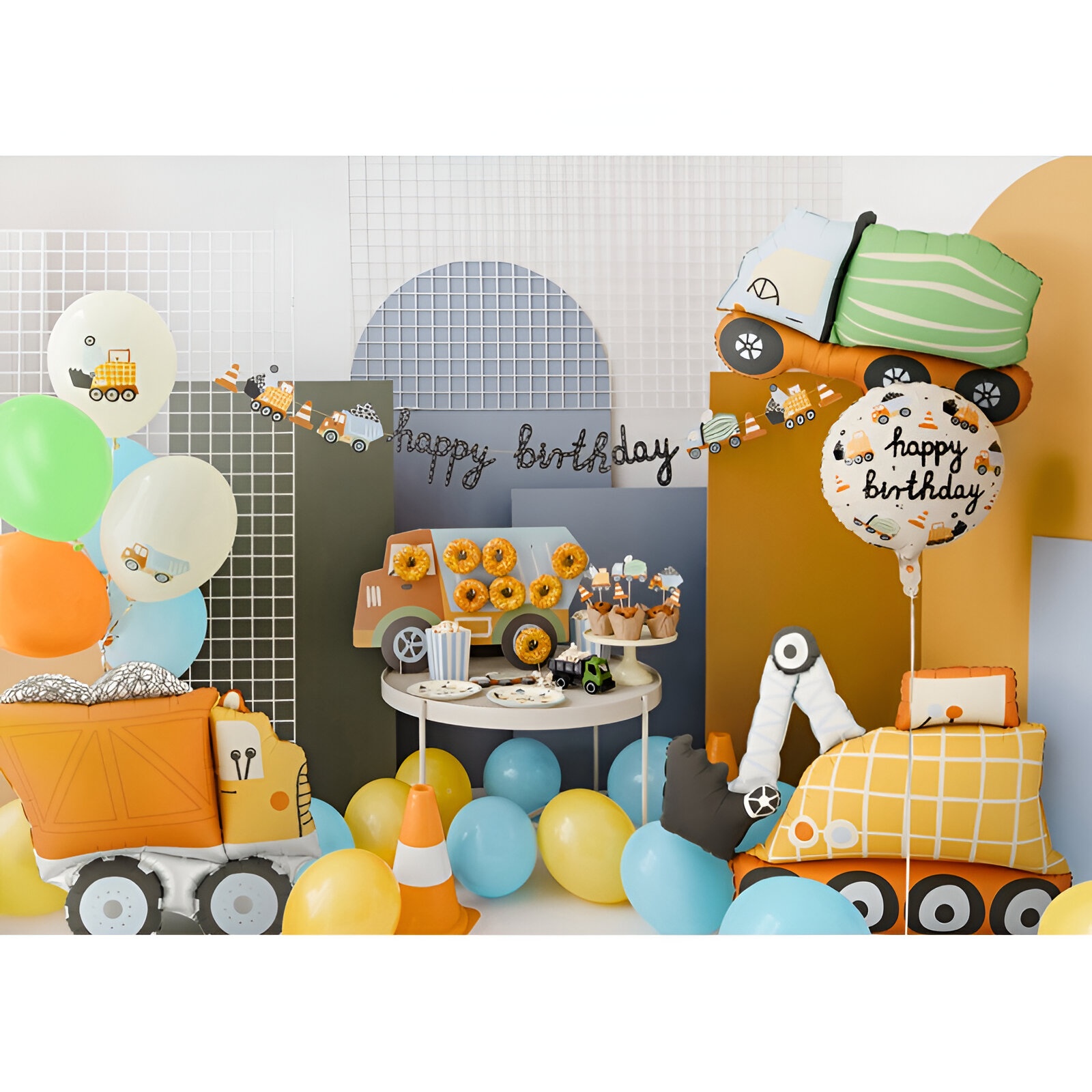 Folienballon in Baggerform mit kräftigen Farben, entwickelt, um Kinderfeiern eine verspielte Atmosphäre zu verleihen. Die Maße vor dem Aufblasen betragen ca. 115 x 96 cm; aufgeblasen misst er etwa 93 x 68 cm. Für Luft- oder Heliumfüllung geeignet, sodass Sie ihn entweder schweben lassen oder als Deko platzieren können. Die auffällige, glänzende Oberfläche hebt jede Themen-Tafel oder den Photocall hervor.