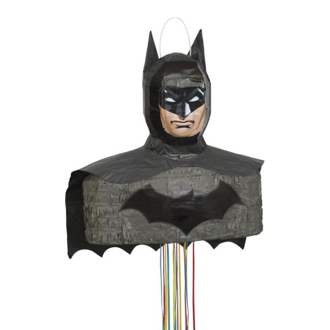 Piñata in Form des Torsos der Comicfigur Batman. Sie können sie mit Ihren Lieblingssüßigkeiten und Spielzeug füllen.