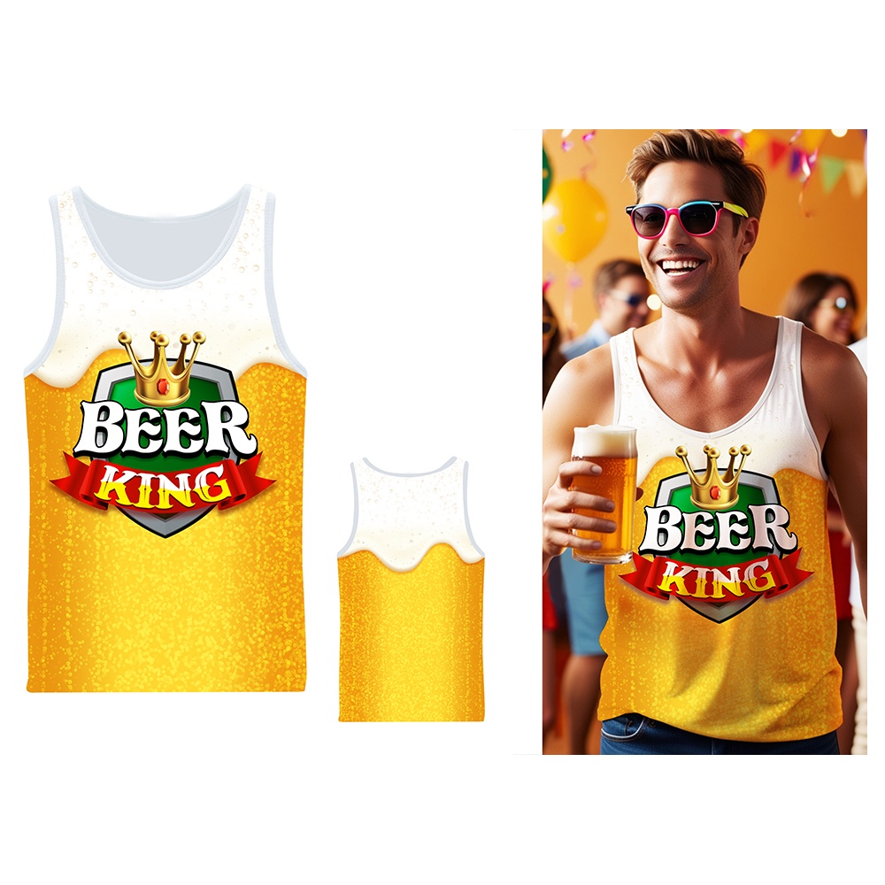 Fallen Sie auf der Feier auf mit dem Beer King Tanktop - einem ärmellosen Shirt im Bierkrug-Look und gekröntem Logo, das für eine fröhliche, festliche Ausstrahlung sorgt.