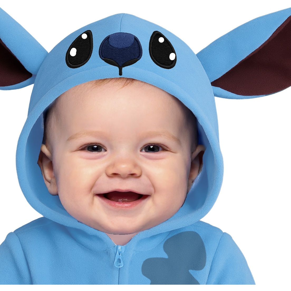 Dieses Modell erinnert uns an Stitch, die Figur aus dem Zeichentrickfilm. Es handelt sich um einen kompletten Overall mit Kapuze, der vorne mit einem Reißverschluss geschlossen wird.