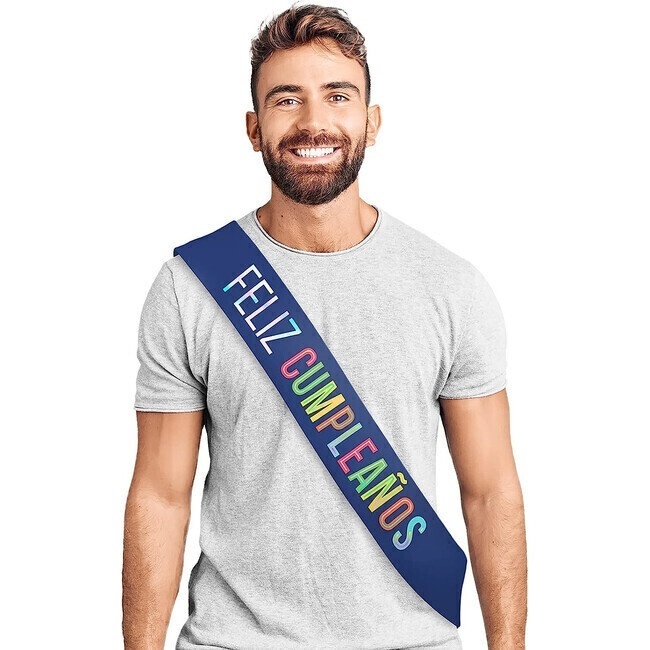 Feiern Sie Ihren Geburtstag mit diesem lustigen Band mit der Aufschrift "Happy Birthday". Es enthält ein gelbes Band, das am unteren Ende des Bandes befestigt werden kann, um die Größe des Bandes an Ihren Körper anpassen zu können.
