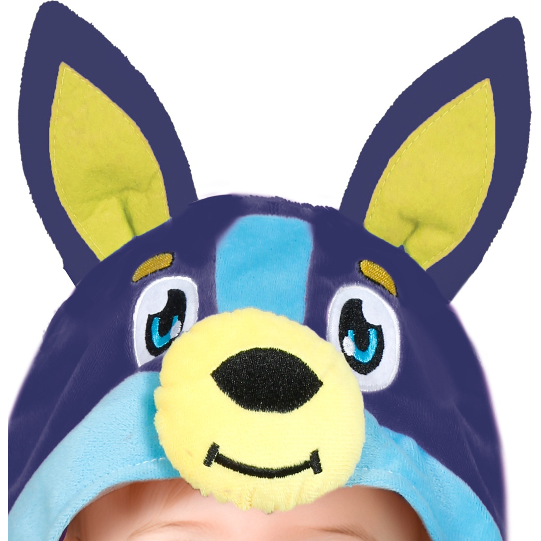 Dieses Modell erinnert uns an Bluey, die Figur aus der Zeichentrickserie. Es besteht aus einem vollständigen Overall mit Kapuze, ideal für Babys.