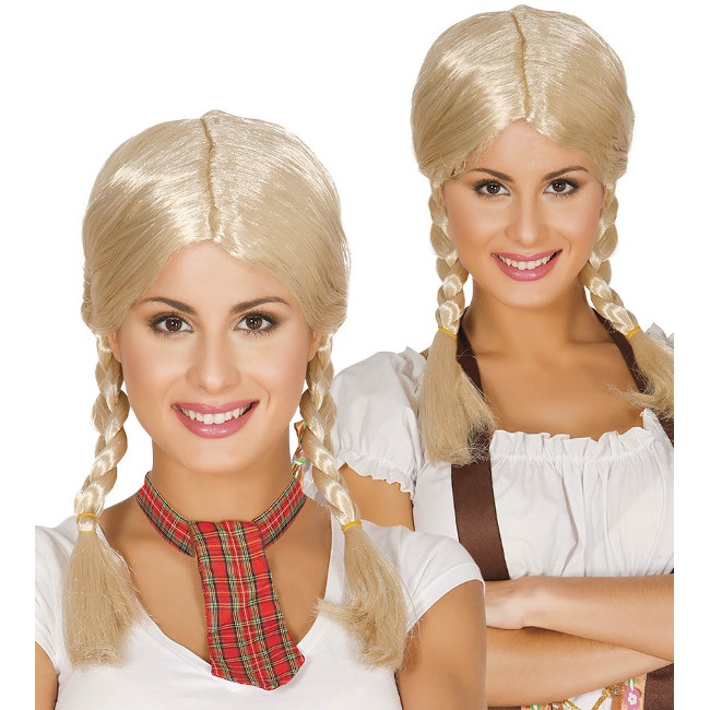 Mit dieser blonden Perücke mit Zöpfen können Sie eine Vielzahl von Kostümen vervollständigen, wie zum Beispiel: Tiroler, Schulmädchen, Mittelalter, Hippie... oder jedes andere Thema.