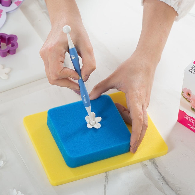 Es handelt sich um ein Set von Schwämmen, die unentbehrlich sind, um Blumen und Figuren aus Modelliermassen zu formen.