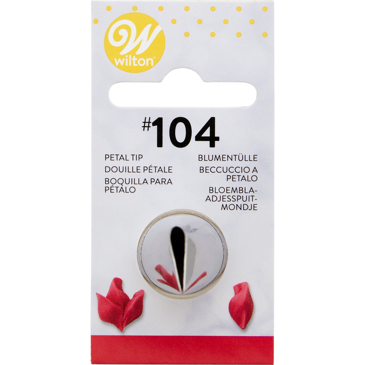 Die Wilton Petal Tülle Nr. 104 ermöglicht präzises und kontrolliertes Arbeiten beim Formen realistischer Blütenblätter und Blumen. Sie ist ein vielseitiges Werkzeug zum Herstellen von Rüschen, Drapierungen, Girlanden und dekorativen Schleifen mit professionellem Erscheinungsbild. Dank des klassischen Designs ist sie ein unverzichtbares Basiswerkzeug für Sie als Hobbybäcker oder Profi, wenn Sie feine Details an Torten und Desserts gestalten möchten. Kompatibel mit Spritzbeuteln und Standard?Kupplungen für ein einfaches Befestigen.