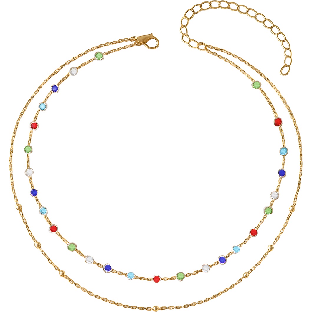 • Boho-Doppelketten-Design mit bunten Steinen für ein auffälliges, feminines Finish.