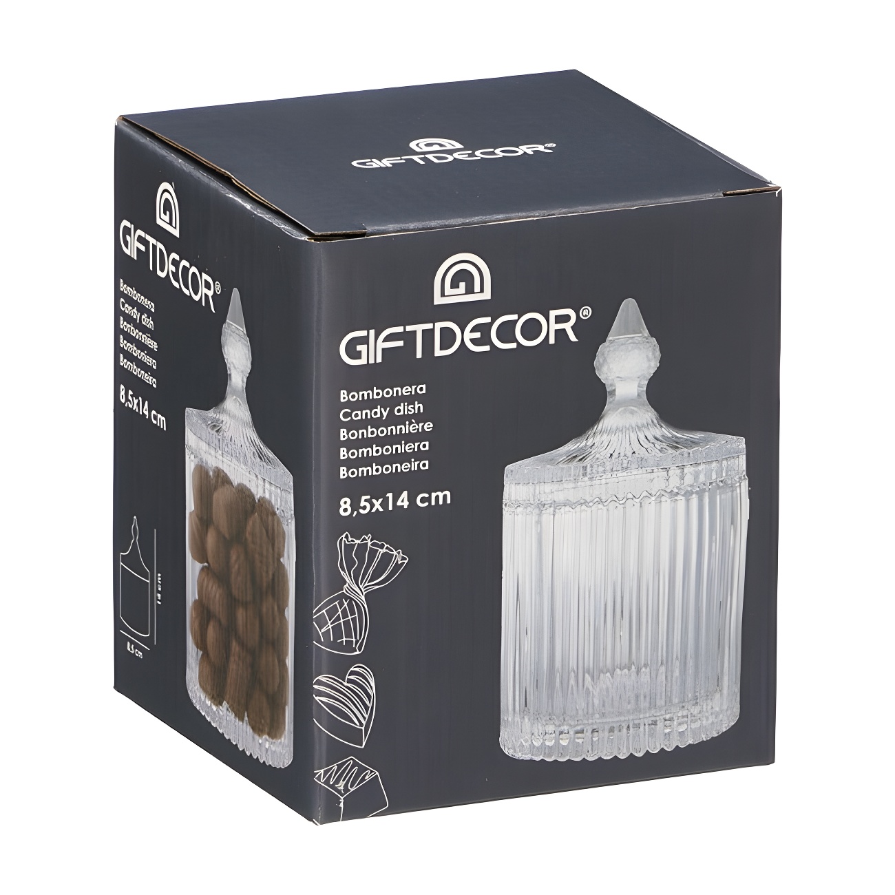 Bonboniere, transparent gestreift, 14 x 8,5 x 8,5 cm