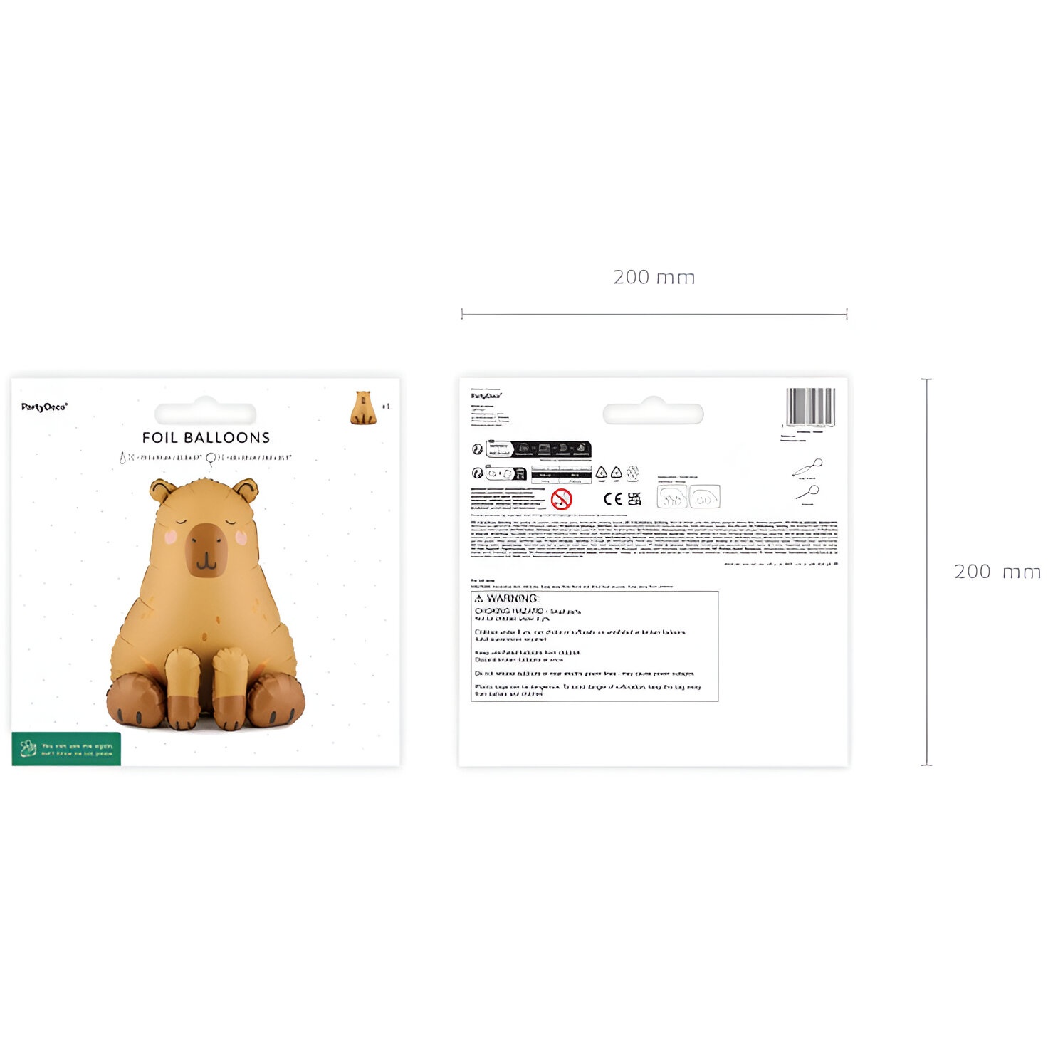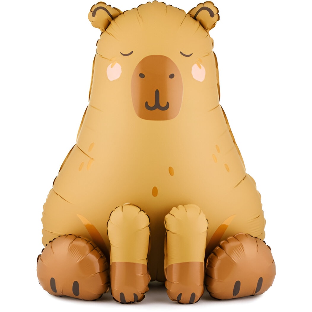 Capybara-Ballon im kawaii-Stil - perfekt, um die Atmosphäre Ihrer Kinderfeiern zu bereichern. In dunklem Gelb und Beige mit glänzendem Finish für einen freundlichen, auffälligen Look. Maße vor dem Aufblasen: ca. 79,5 x 94 cm; nach dem Aufblasen: ca. 63 x 80 cm. Für Luftaufblasung konzipiert; lässt sich leicht auf Tischen, als Photocall-Hintergrund oder in Themenecken platzieren.