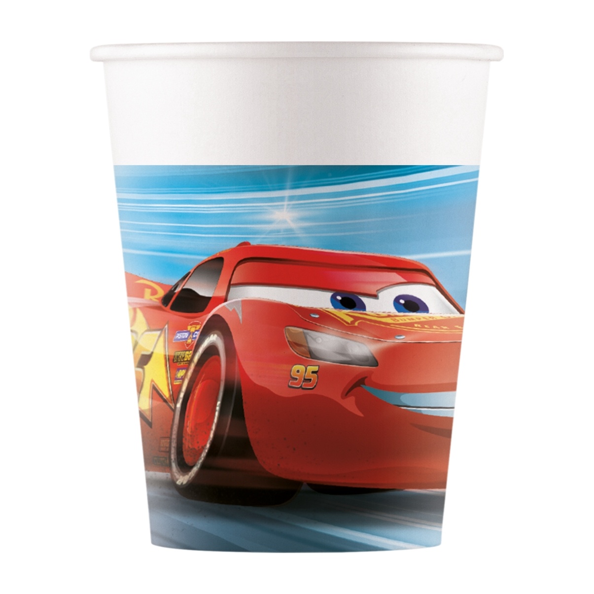 Pack mit Bechern, die das ikonische Motiv von Rayo McQueen aus dem Film Cars zeigen. Farbintensives, auffälliges Design, das sofort für Spaß auf Kinderfeiern sorgt. Perfekt für Geburtstage, Nachmittags-Snacks und Kinderfeste.