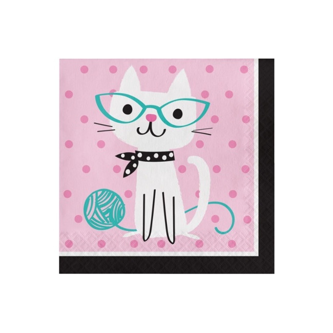 Packung mit 16 Papierservietten zum Dekorieren und für eine stimmungsvolle Atmosphäre bei Kinderpartys. Ideal für Katzenliebhaber.