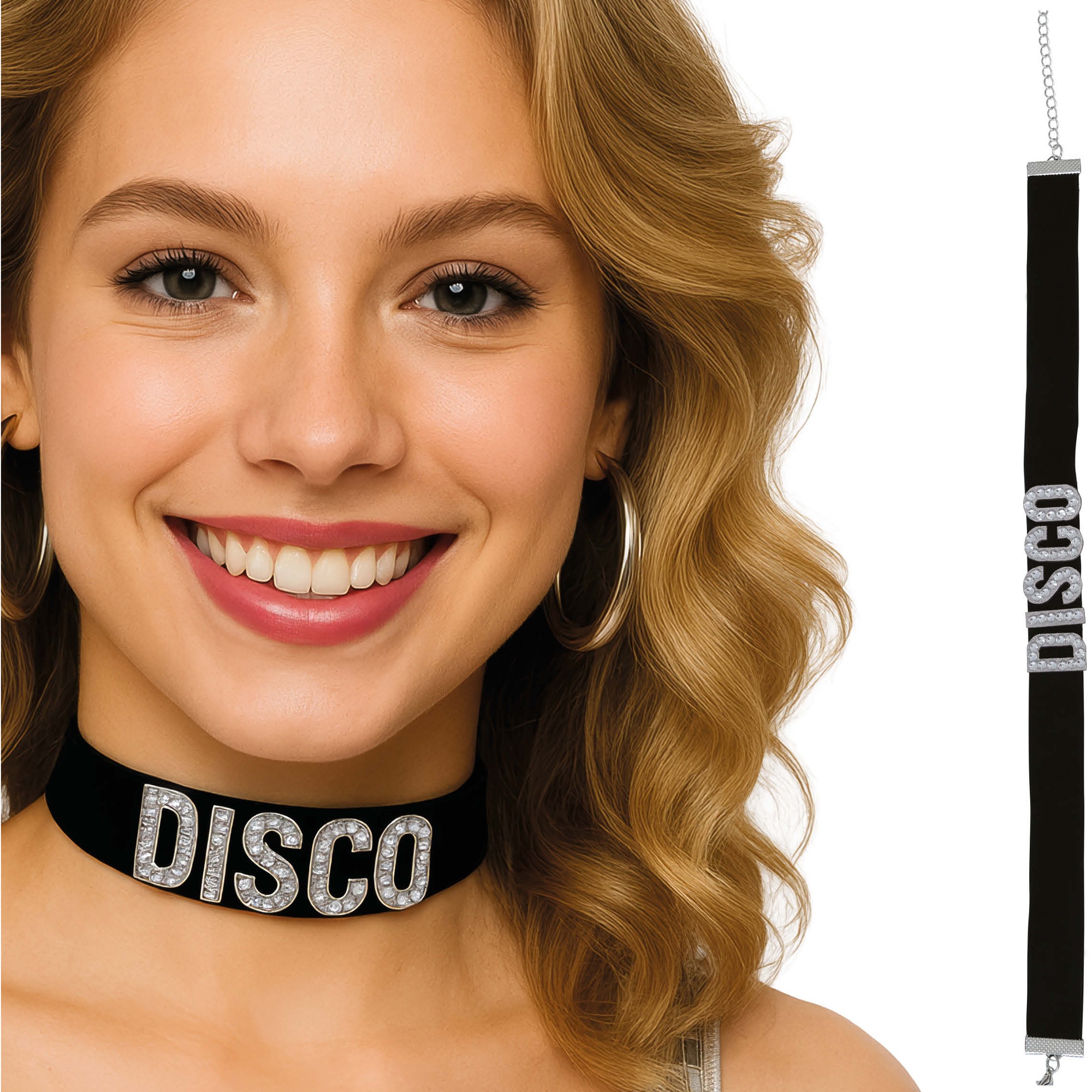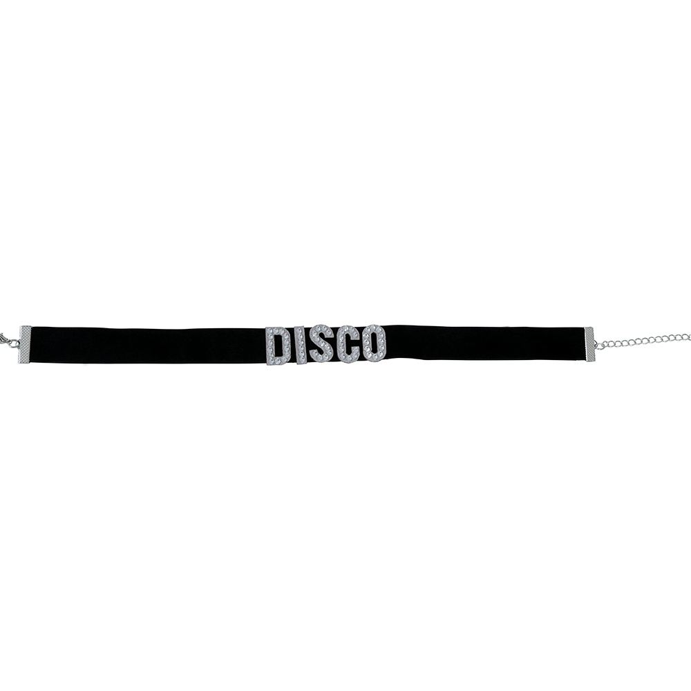Choker im Retro-Stil mit 'DISCO'-Buchstaben aus Strass, die extra Glanz und Partystimmung verleihen.