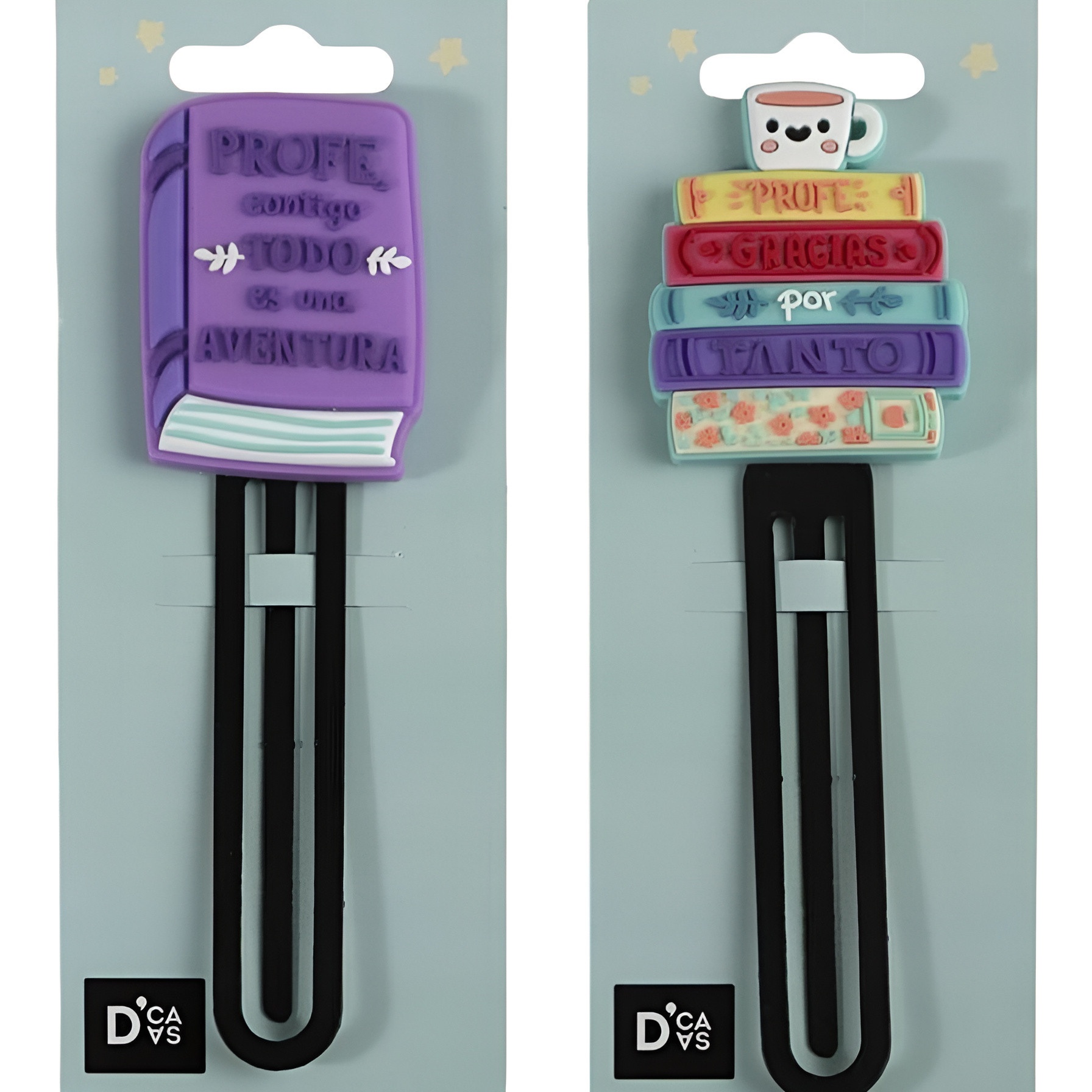 Clip-Lesezeichen mit speziellem "Profe"-Design - ein praktisches und sympathisches Detail für Lehrkräfte. Das dekorative Design verleiht Büchern, Planern und Notizbüchern eine persönliche Note. Es ist leicht und einfach anzubringen und markiert die Seite, ohne das Papier zu beschädigen. Überraschen Sie Ihre Lehrkraft mit diesem idealen Dankeschön oder kleinen Geschenk für die Schule.
