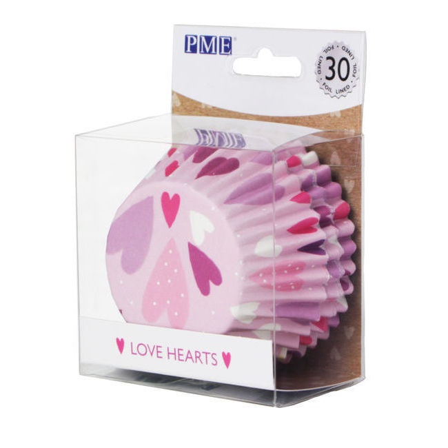 Cupcake-Förmchen mit Herzen mit Aluminium-Innenseite - PME - 30 Stk.