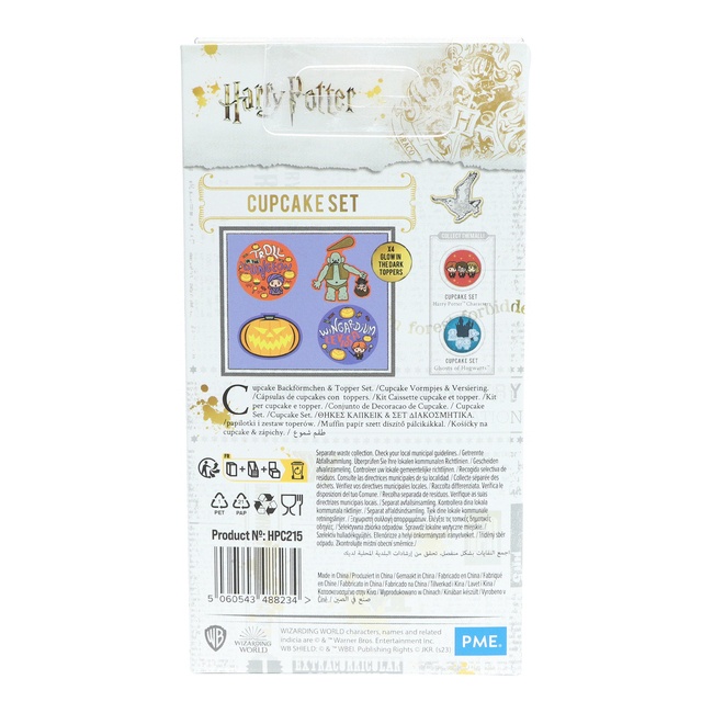 - Die Toppers enthalten 4 verschiedene Designs: Troll und Harry, Kürbis, Wingardium Leviosa und Troll im Kerker