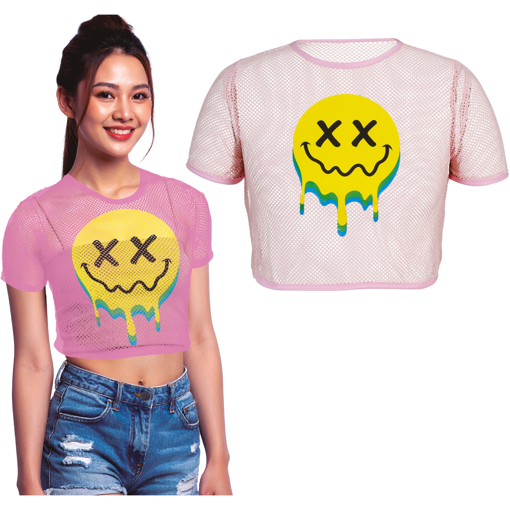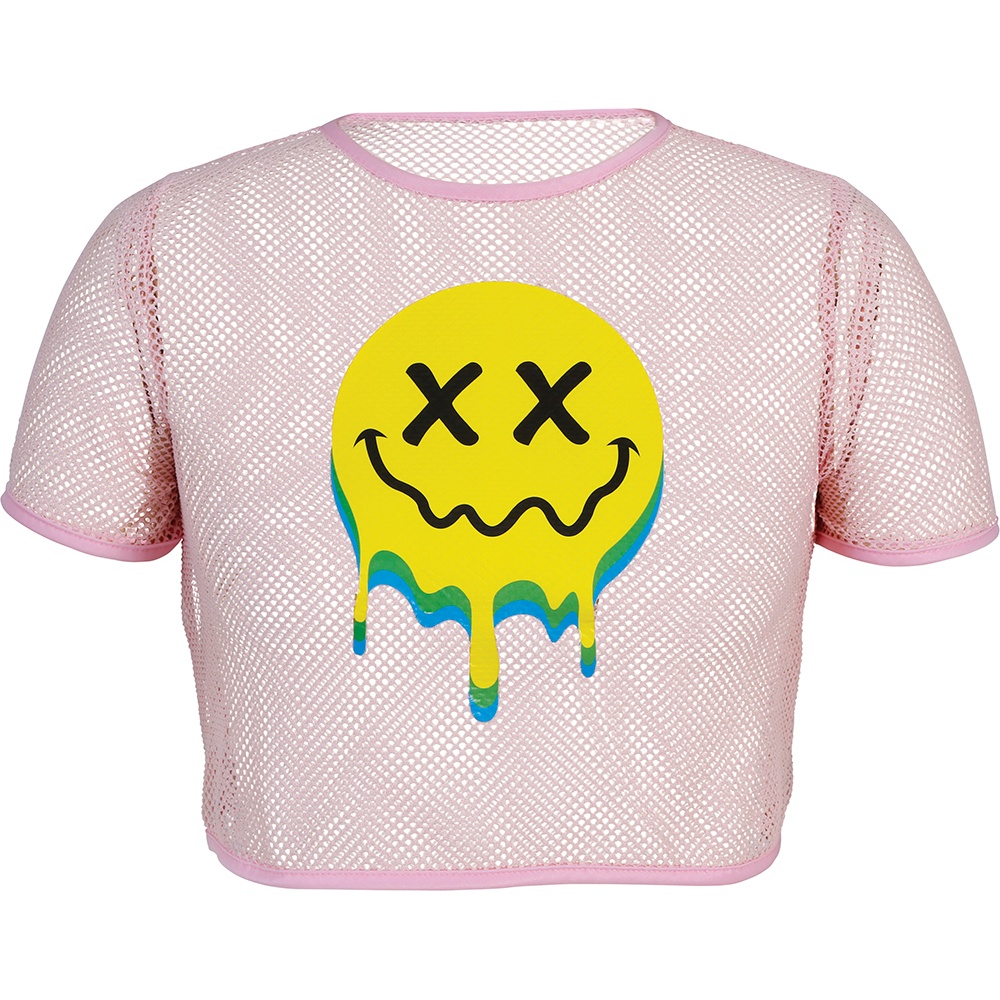 Damen-Mesh-Crop-Top mit Smiley