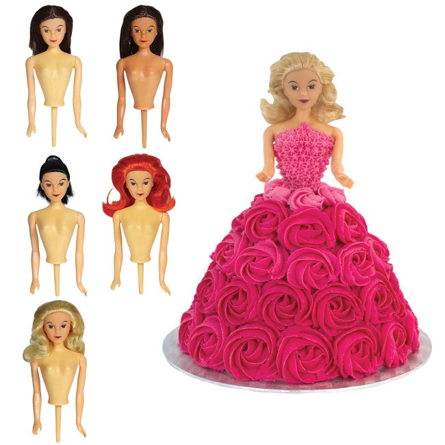 Diese Puppenfiguren, die aus einem Rumpf und einem Kopf mit langen Haaren bestehen, sind perfekt für die Gestaltung von Prinzessinnenkuchen. Sie können sie mit den Kuppelformen ergänzen, um ein authentisches Prinzessinnenkleid zu kreieren und sie mit den Backmaterialien Ihrer Wahl zu dekorieren.