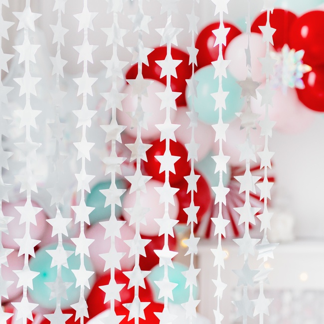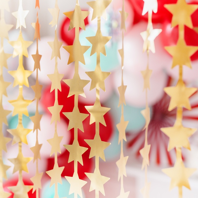 Ein metallischer Vorhang mit Sternen zur Dekoration.