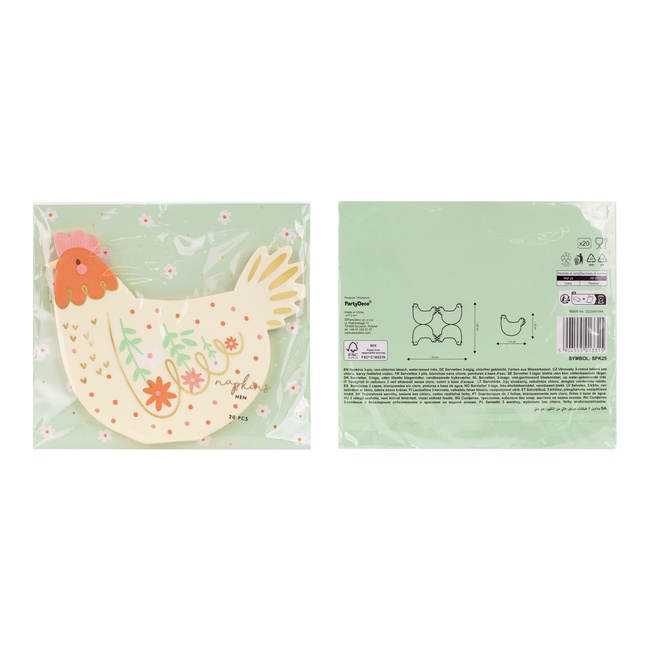 Dekorierte Hühnerservietten 16 x 13 cm - 20 Stück.