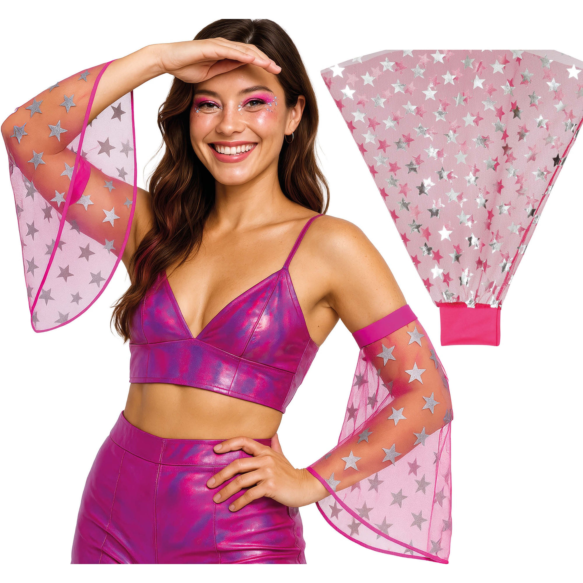 Disco?Ärmel mit holografischem Finish, die Ihnen intensiven Glanz und dynamische Bewegungen verleihen.