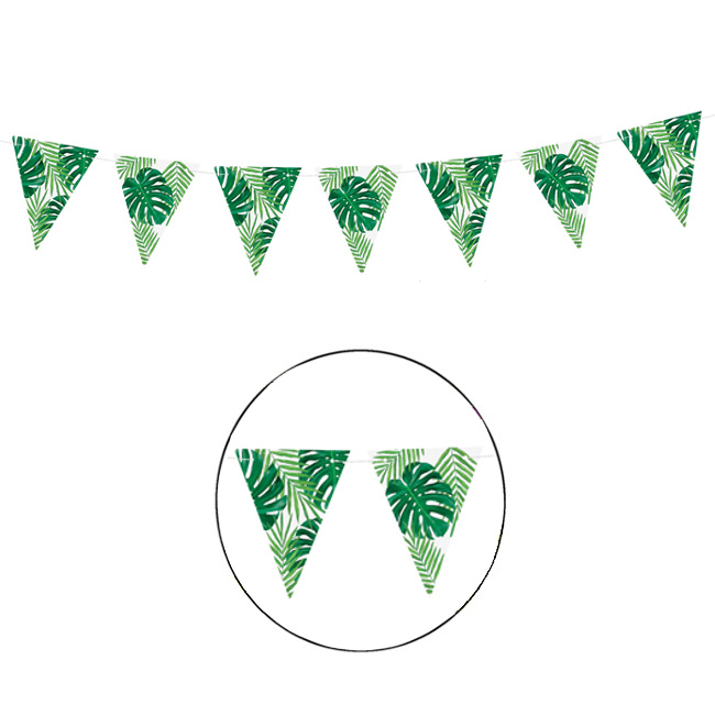 Dreieckiger Wimpel aus Papier mit tropischen Blättern - 2,00 m