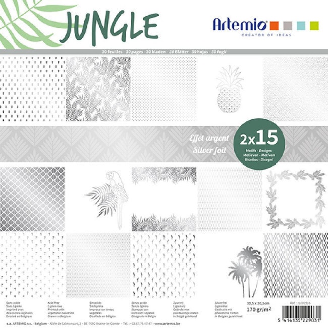 Dschungel Scrapbooking Papier Kit mit Metallic-Effekt - Artemio - 30 Blätter
