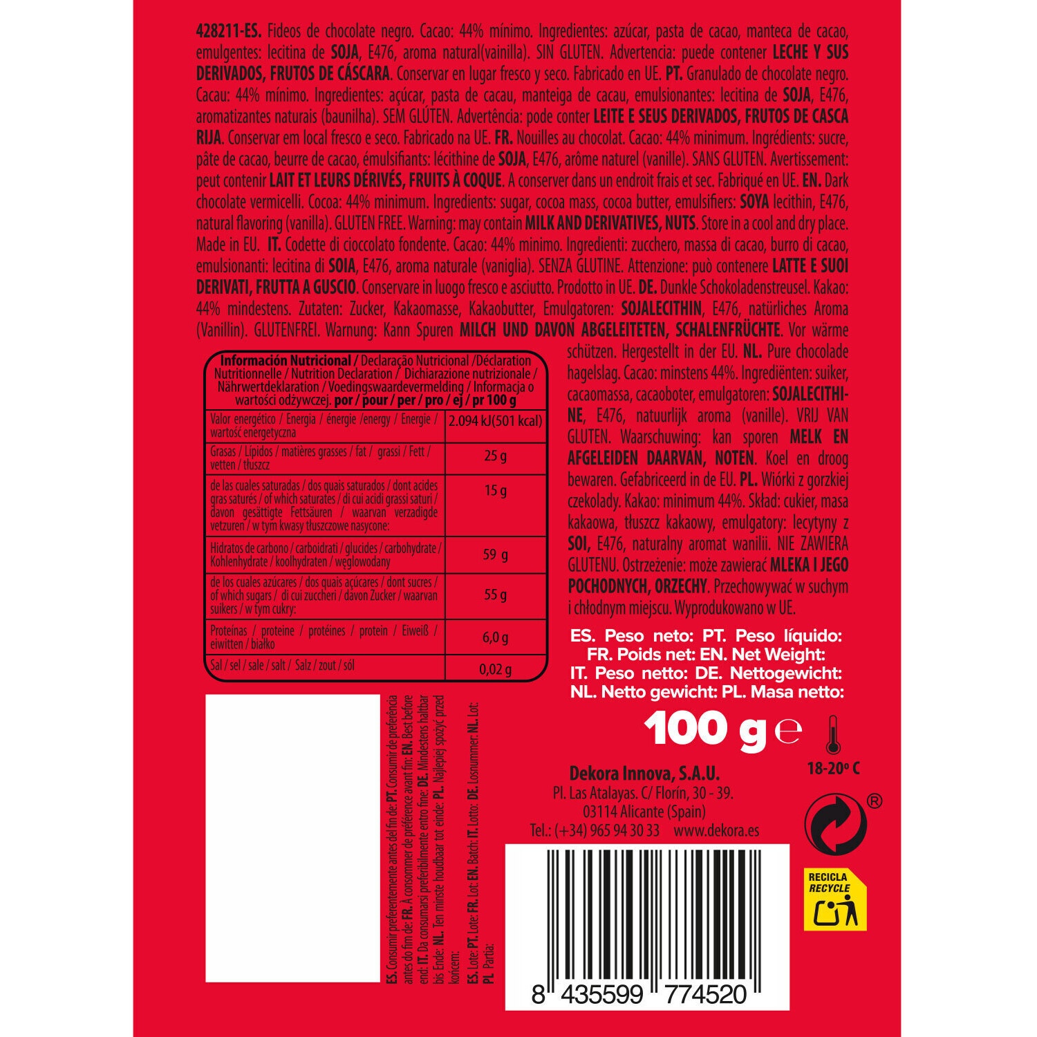 • Allergene: Schalenfrüchte und Erzeugnisse, Milch einschließlich Laktose und Erzeugnisse, Soja und Erzeugnisse.