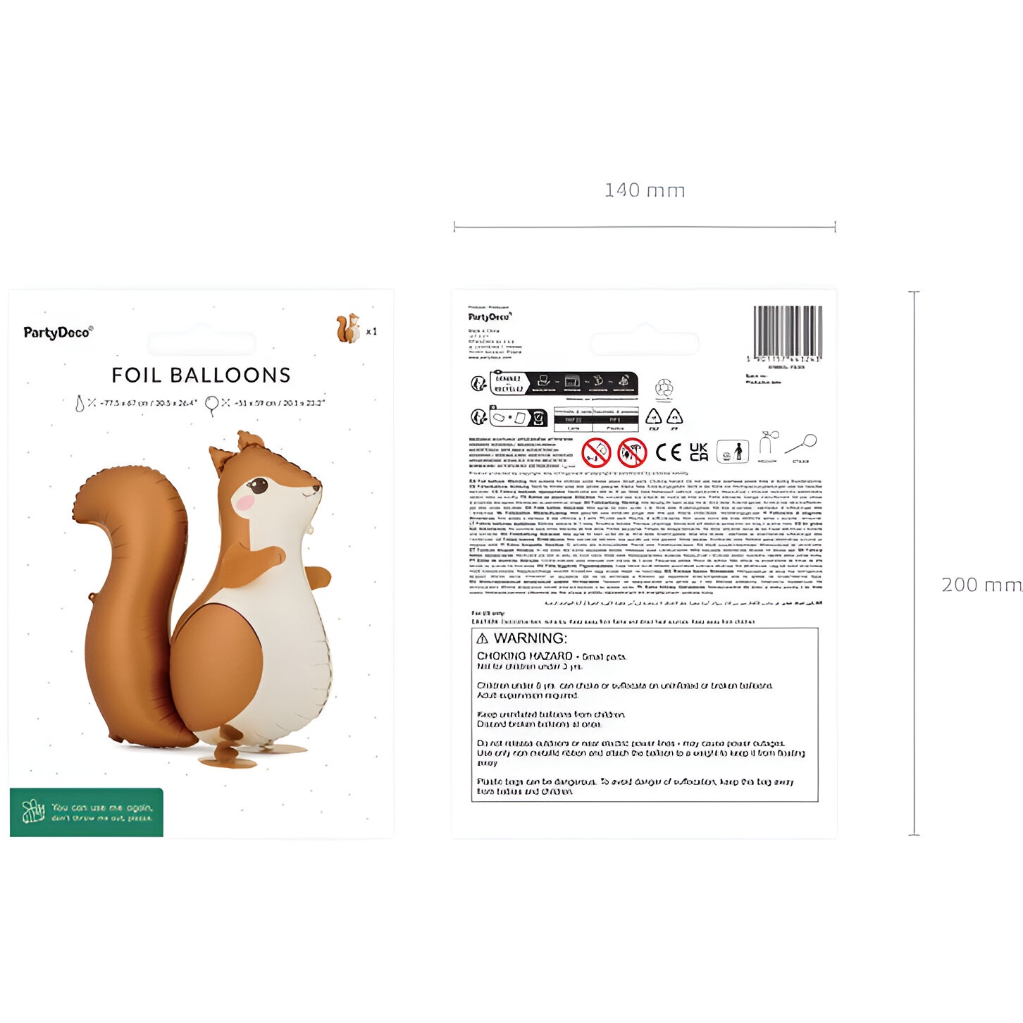 Folienballon in Eichhörnchenform in Orange- und Cremetönen mit glänzendem Finish und dreidimensionaler Silhouette, die jeder Kinderdekoration Bewegung und Niedlichkeit verleiht.