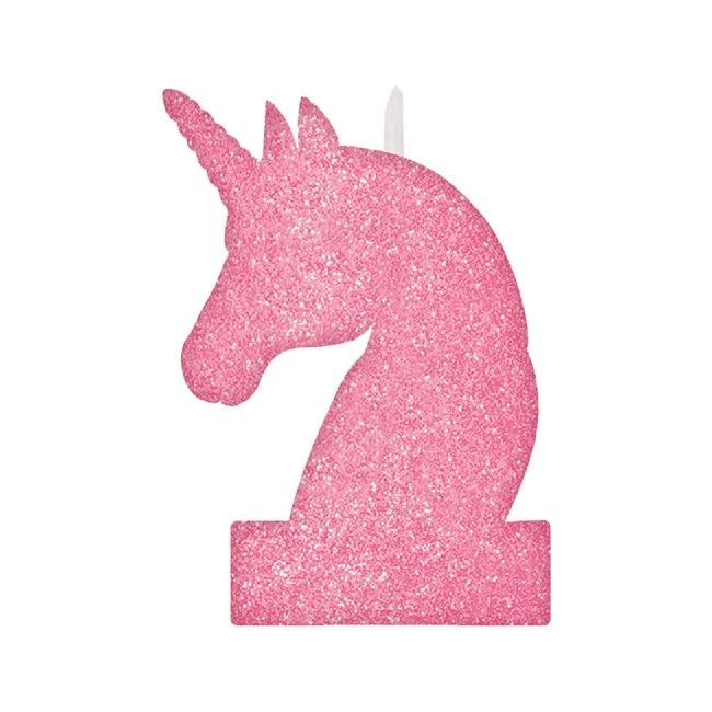 Einhorn Glitzer Deko-Kerze 7,5 x 11,5 cm - 1 Stück