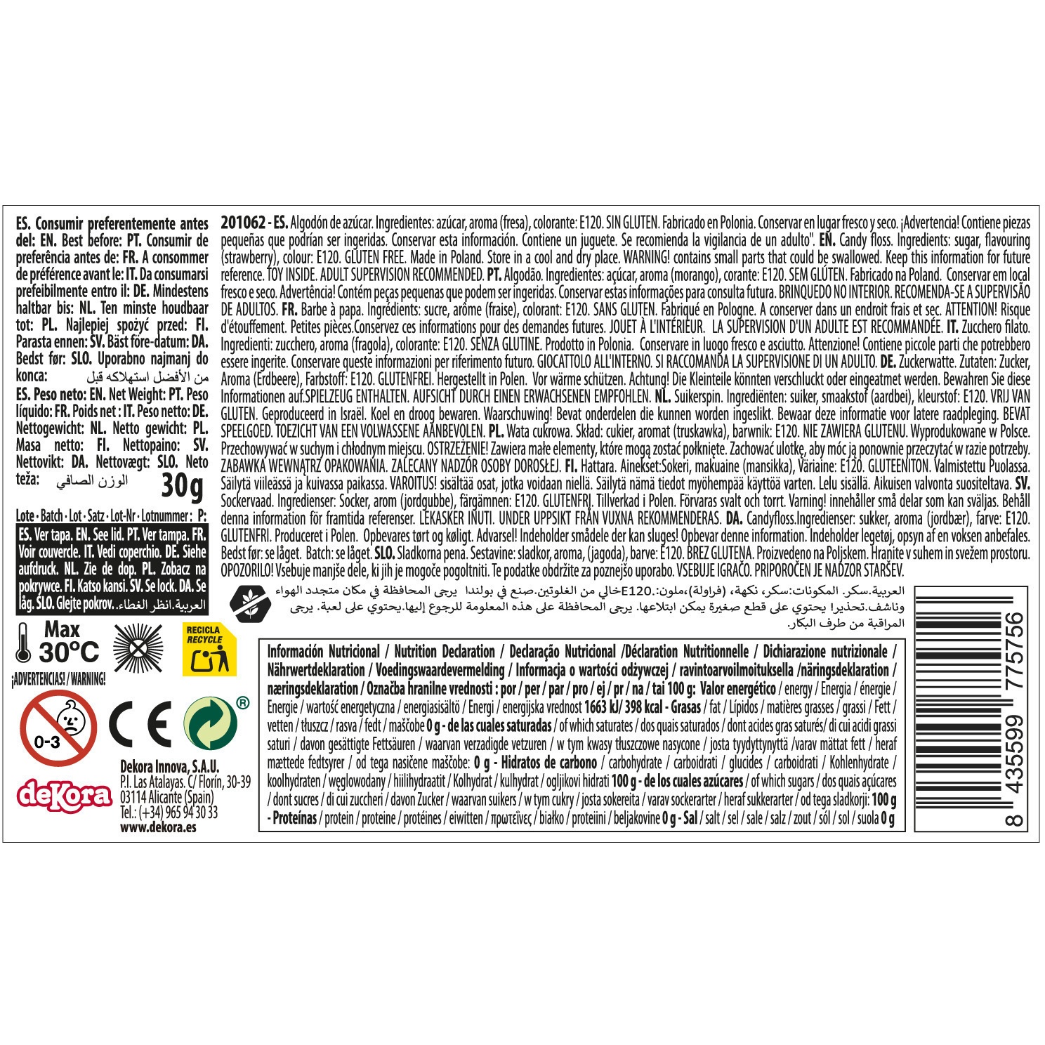 Zutaten: Zucker, Aroma (Erdbeere), Farbstoff: E120.