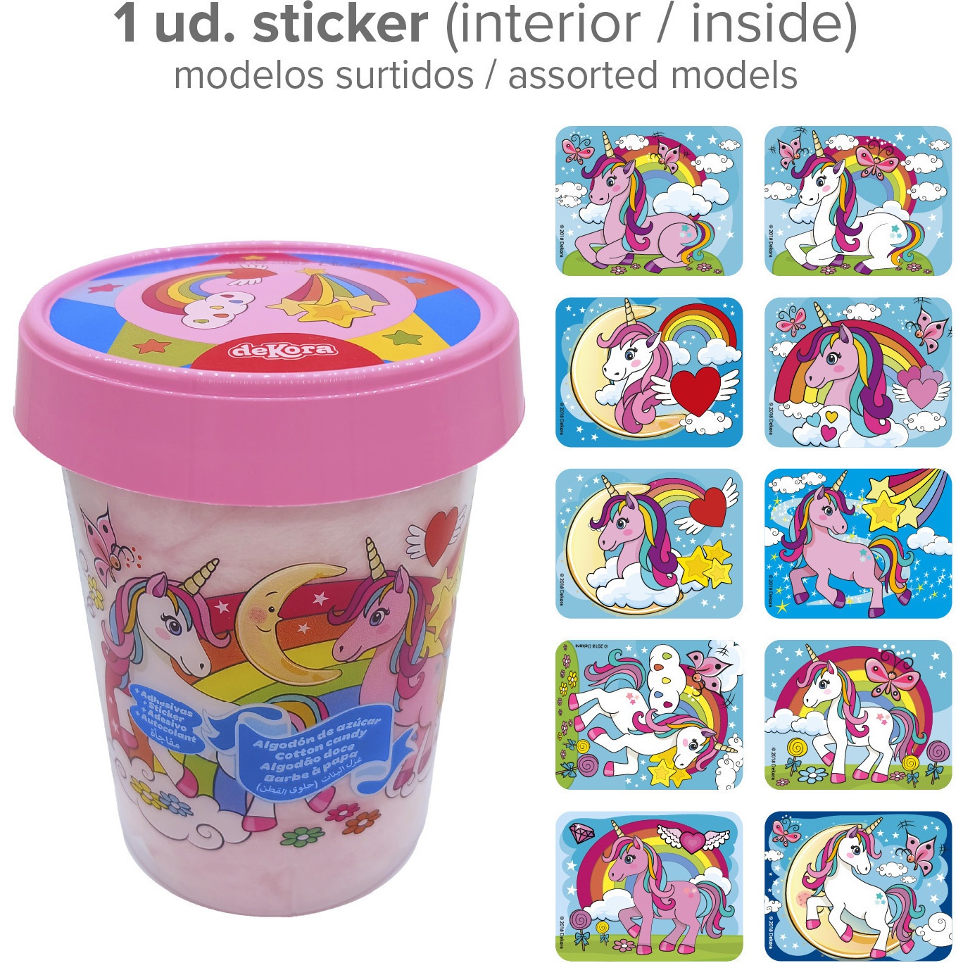 Einhorn-Zuckerwatte mit Einhorn-Aufkleber, 30 g