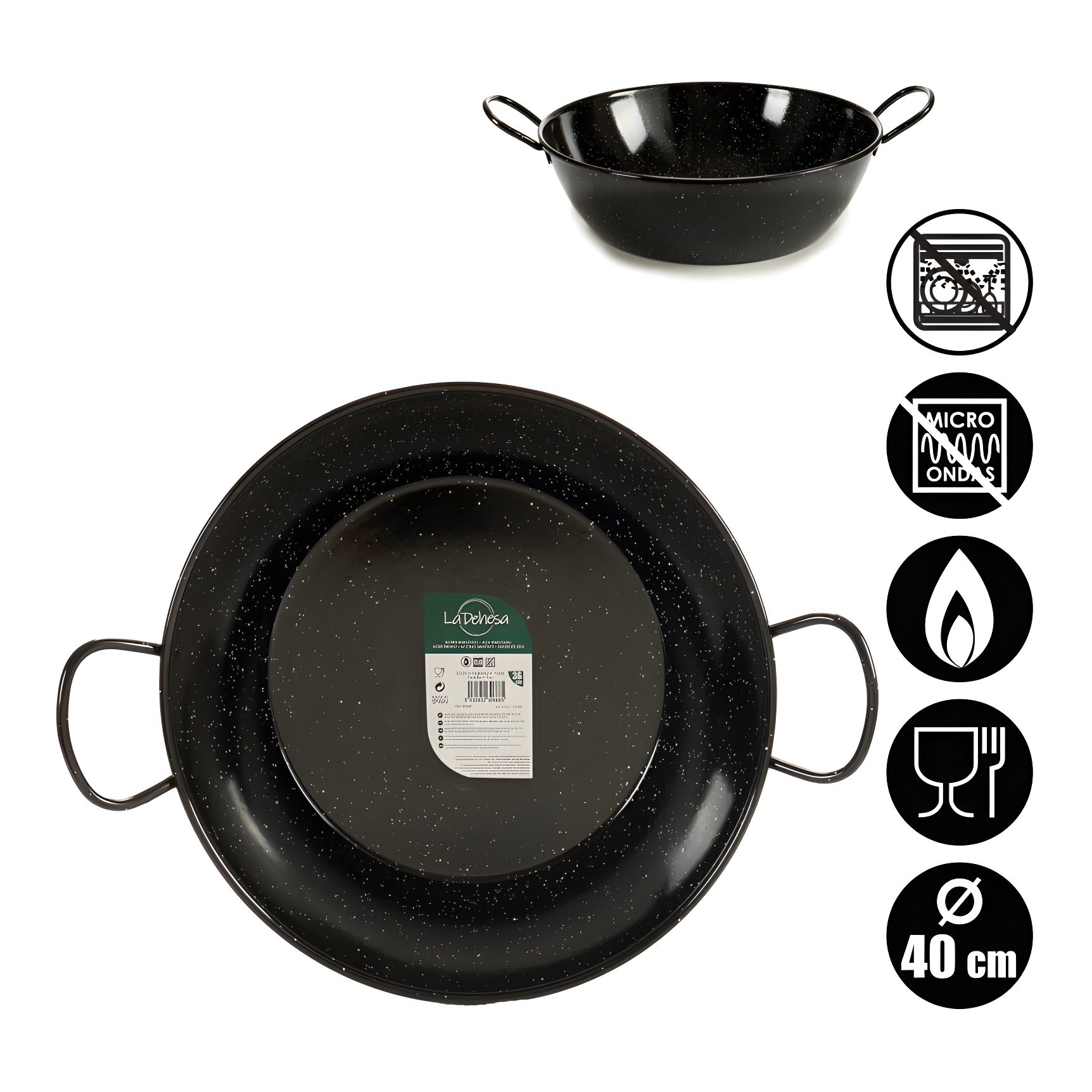 Emaillierte 40 cm Gazpachera-Pfanne mit Griffen