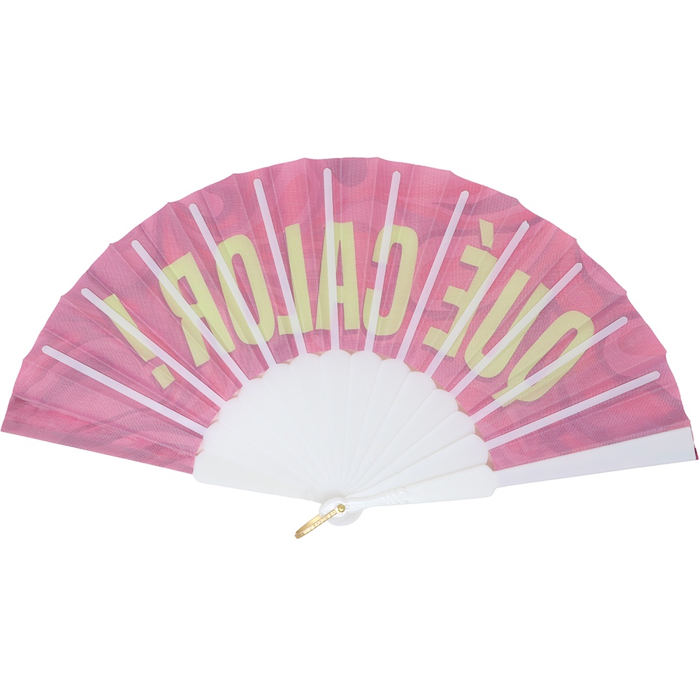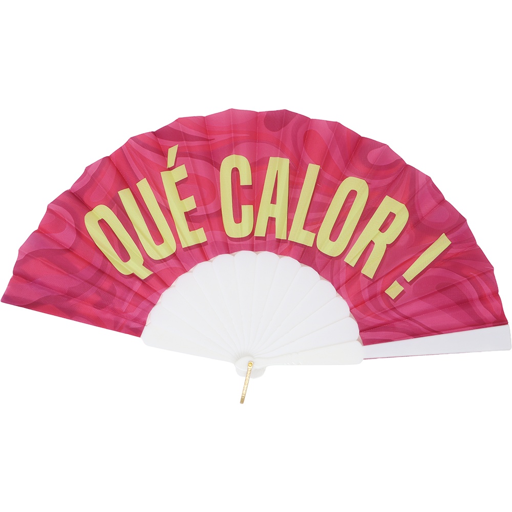Faltfächer mit Aufschrift 'QUÉ CALOR!'
