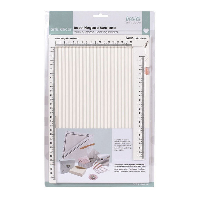 - Enthält ein Falzwerkzeug zum Rillen und Referenztafeln zur Herstellung von Briefumschlägen, Briefumschlägen und Schachteln. Außerdem wird ein 23 cm langer Zollstock mitgeliefert.